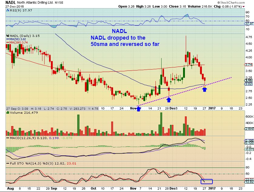 NADL – This just tagged the 50sma and put in a reversal. This could be considered a low risk buy here, with a stop a bit below the 50sma.