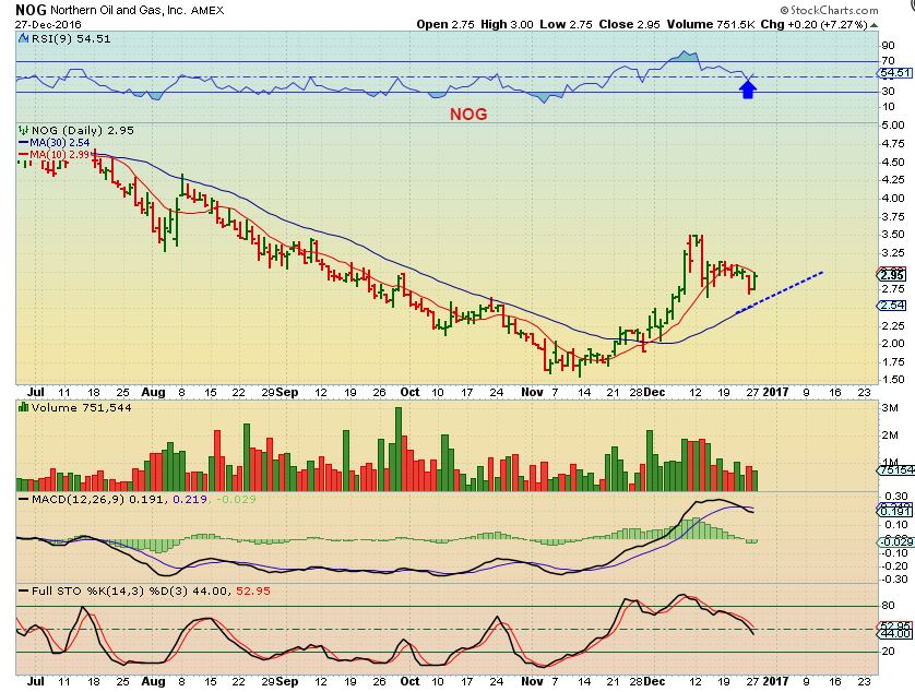 NOG – It may drift to the 50sma if Oil dips down. It has been holding up nicely after a strong run from near $1.50 to $$3.50.