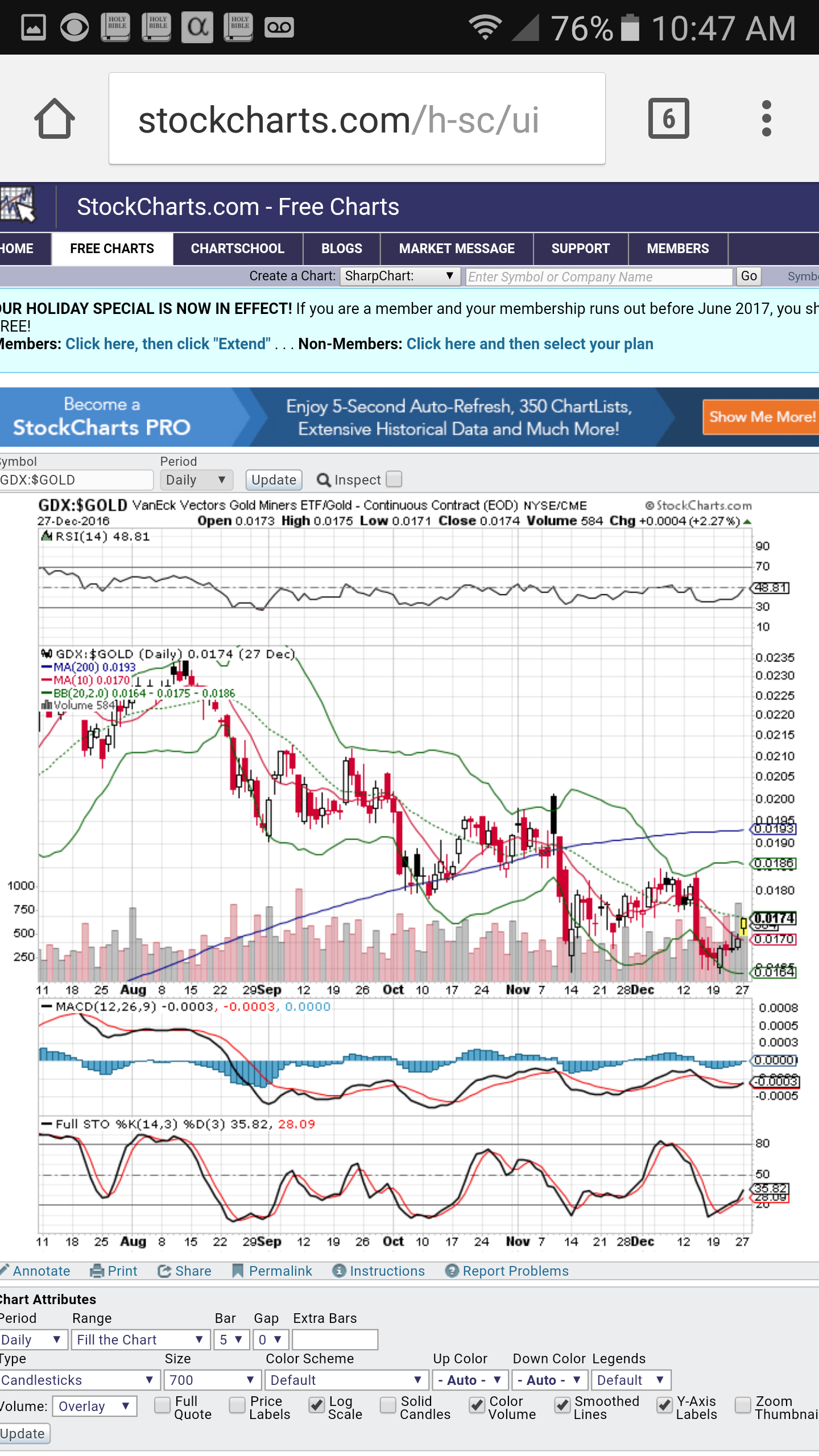 Let’s look at just a couple of Miners that moved higher and see how they look. I have already mentioned GPL and DRD as  good looking at this point.   GPL continued higher, as for DRD…