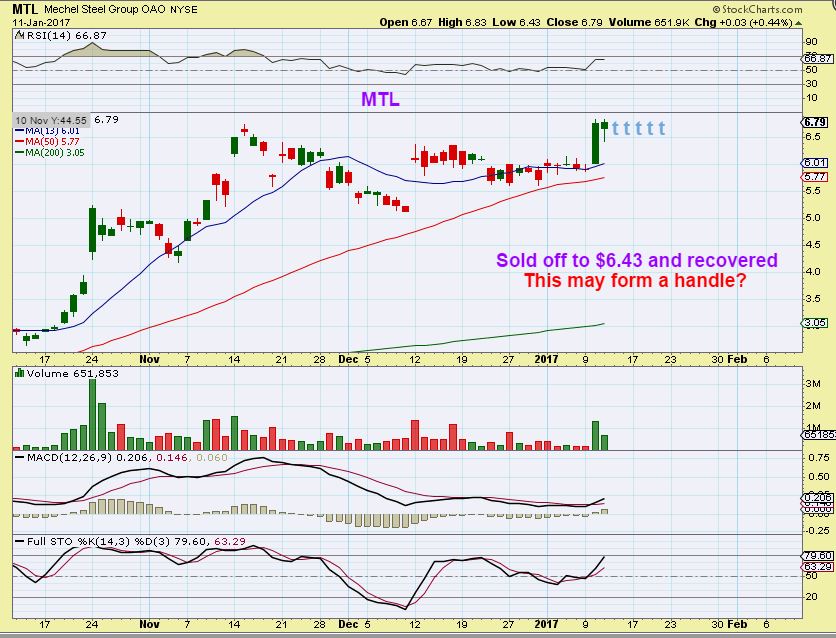 MTL DAILY – MTL sold off about 35 cents Wednesday and then recovered. I added to my position and I can see this either forming a handle, or just continuing higher.