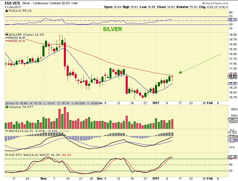 SILVER – Close , but not yet. Watch the $16.91 area as resistance.