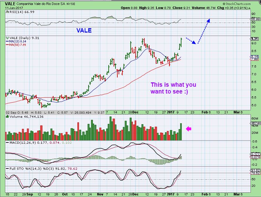 Did you notice that many of these picks are breaking out of lows and just starting to form a cup? When I recommended VALE & CLF for example, they had similar looking pull backs to some of the above. This was my Vale recommendation, for example.