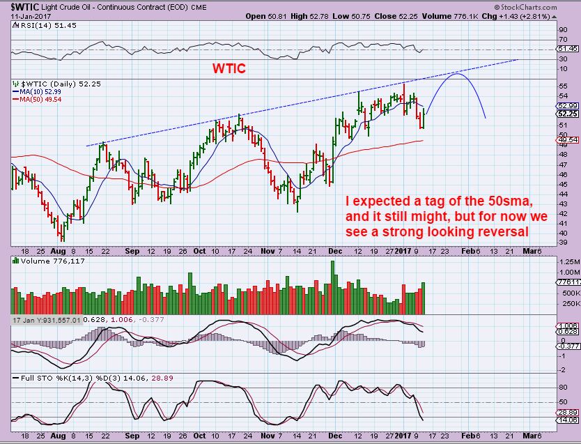 WTIC – I expected OIL to drop to the 50sma ( it still might), but it put in a pretty solid reversal on Wednesday. That MIGHT have been the Daily Cycle low (dcl).