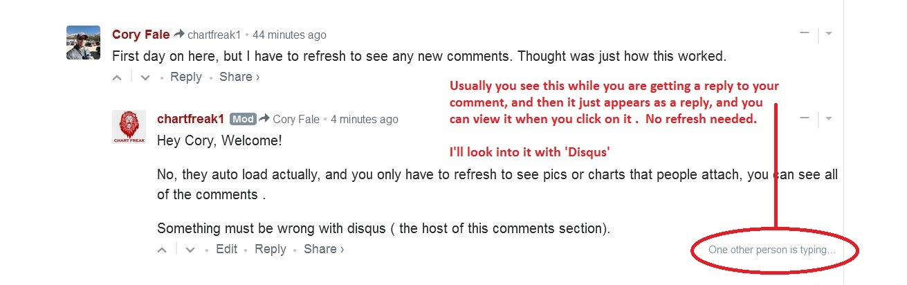 First day on here, but I have to refresh to see any new comments. Thought was just how this worked.