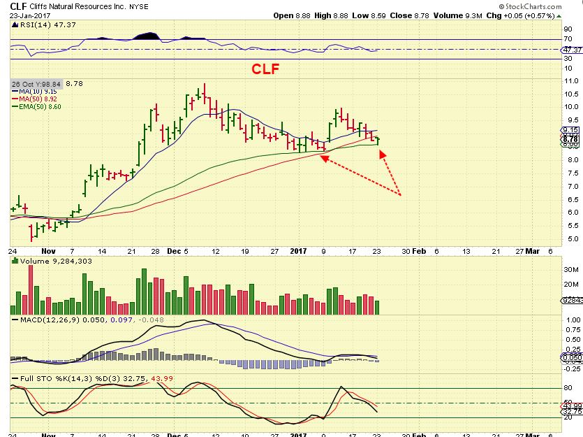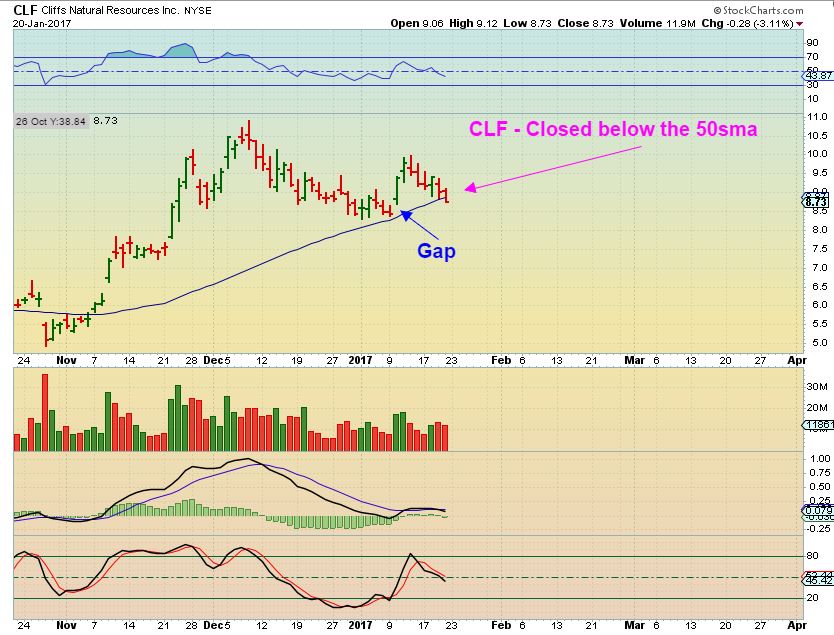 CLF – This dropped below the 50sma.
