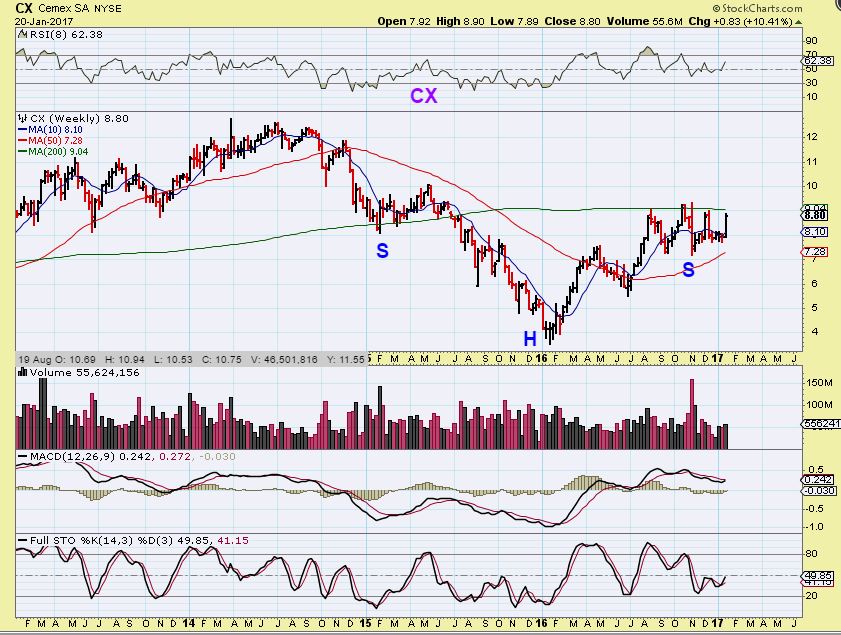 CX – This looks ready to break out. Construction, Cement, Ready MIx, etc. A Trump Infrastructure play 🙂