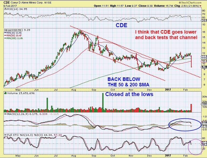 CDE CHART #1 – OUCH! I skimmed their report and have no idea what is going on here, but it looks like FUNDS or big money was taking their exit. If I bought it as core in the spring of 2016, it’s a huge let down, but I guess I would still be holding it. What if I personally bought this in Dec 2017 or even later? I would be stopped out ( or I would have just sold) since it broke the 50 & 200sma, then I would just wait and see. This is not normal 1 day action and thus it may need time to repair itself. Time that my money can be used elsewhere. IS A BACK TEST COMING ??Ossibly. See also chart #2.