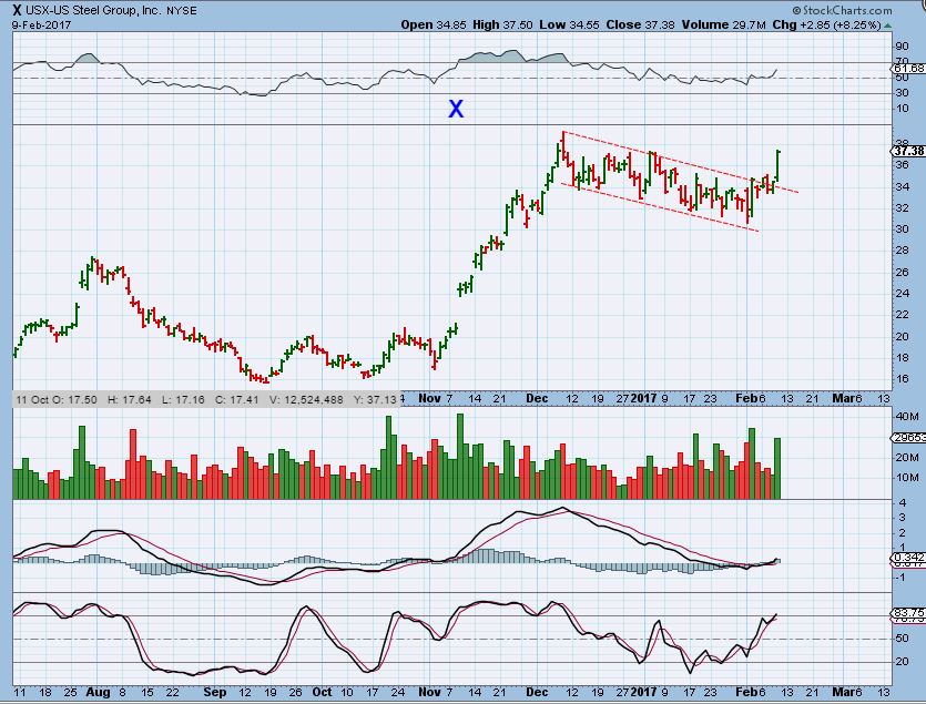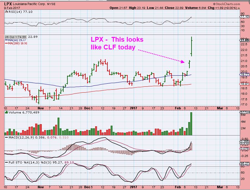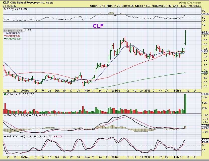 X– Mentioned A week ago, we saw great follow through Thursday. This has a lot more upside in my opinion. I mentioned a $52 price target the last time this was in my report a week ago. X, AKS, CLF, SHLO, etc all did well.