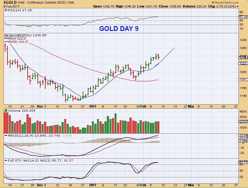 GOLD – Day 9 and it can drop further. $1222 would be ideal, that is the 10 sma.