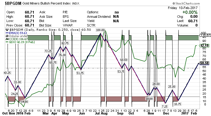 Good news. $BPGDM is holding firm. The green line chart in the background is GDX. Notice that they are not perfectly correlated. Notice how they both had a pull back in May which is seasonally weak and bottomed there together. Thus, it would be nice if we could rally into April before having a serious correction – $BPGDM led the top there. Also, $BPGDM led the top in Aug and the bottom in Dec. So it is something to watch. Hopefully this next week will give us a nice rally.