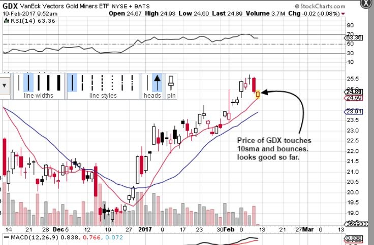 Your chart on GDX, “GDX has been riding the top of the bands” what type of bands are those? They don’t look like Bollinger bands. What is the name of the indicator on stock charts?