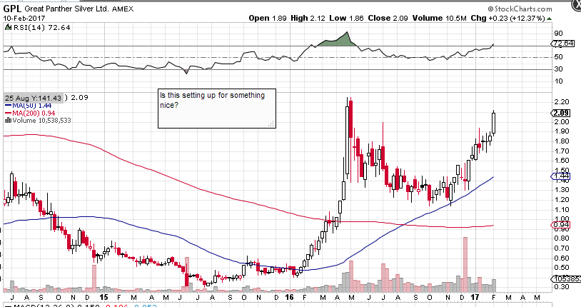Gary, check out EXK, and MUXie as well. Though not back to 2016 highs yet, pull up AG, SA long term. AG off the Nov lows is killing it. SA just got flowing this week.
