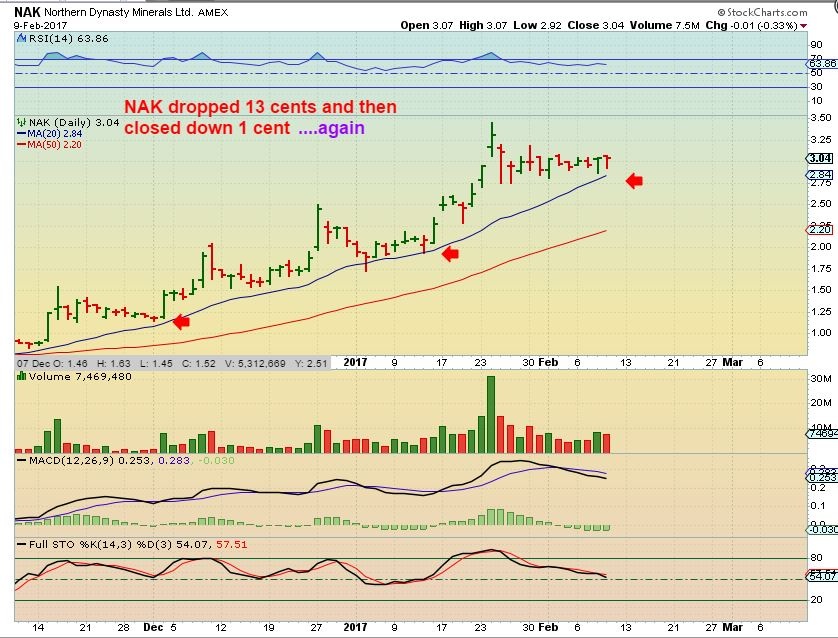 I pointed out NAK Wednesday. Again it just dropped 13 cents and closed only down 1 cent.