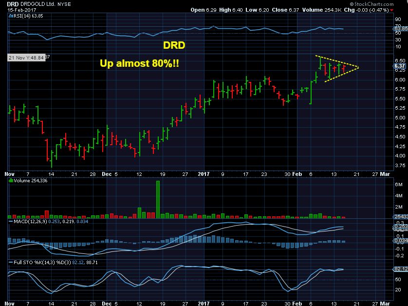 DRD– Up almost 80% in 2 months and holding near the highs. Bullish or bearish.