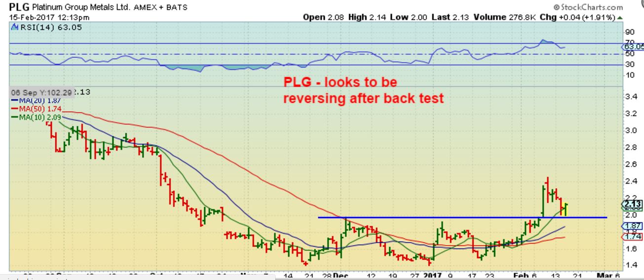 PLG – This is a trade idea that I had in January. I wanted to point out that the normal pullback was a back test and it reversed. This may have been a good place to add.