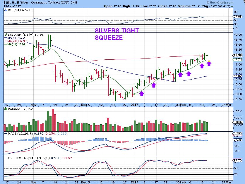 SILVER – Some are even wondering why Silver is so weak, and should we be selling. Day by day it may seem weak, but please see the chart. Is this a weak chart or a strong chart?
