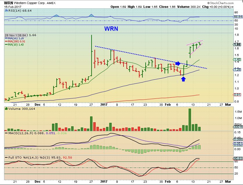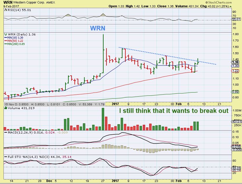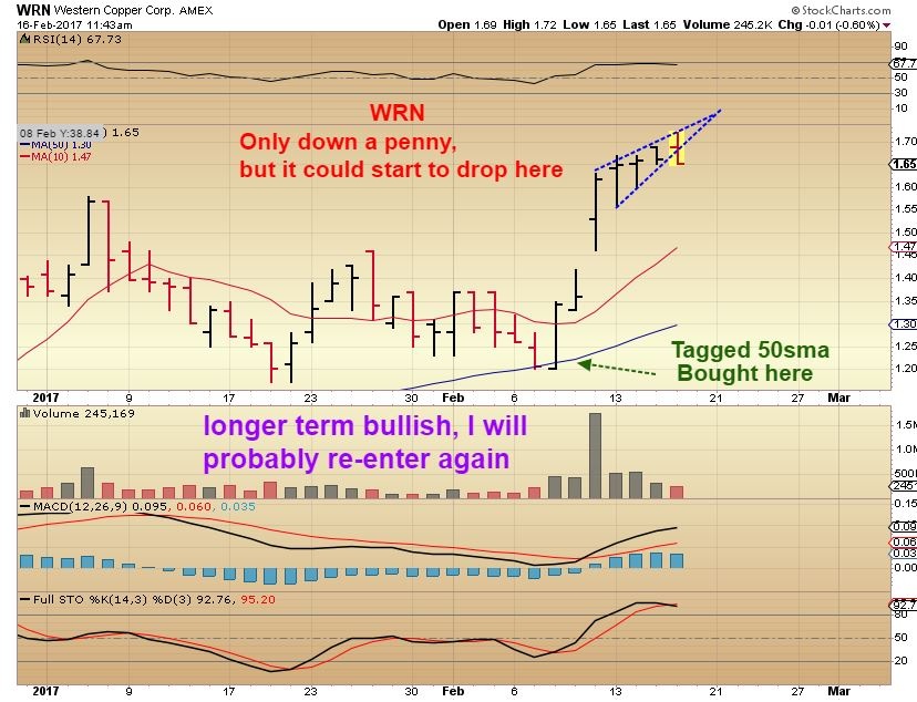 WRN – This buy idea had good potential. I bought the reversal off of the 50sma and posted this in case anyone wanted to buy the break out ( a bullish break out). $1.34