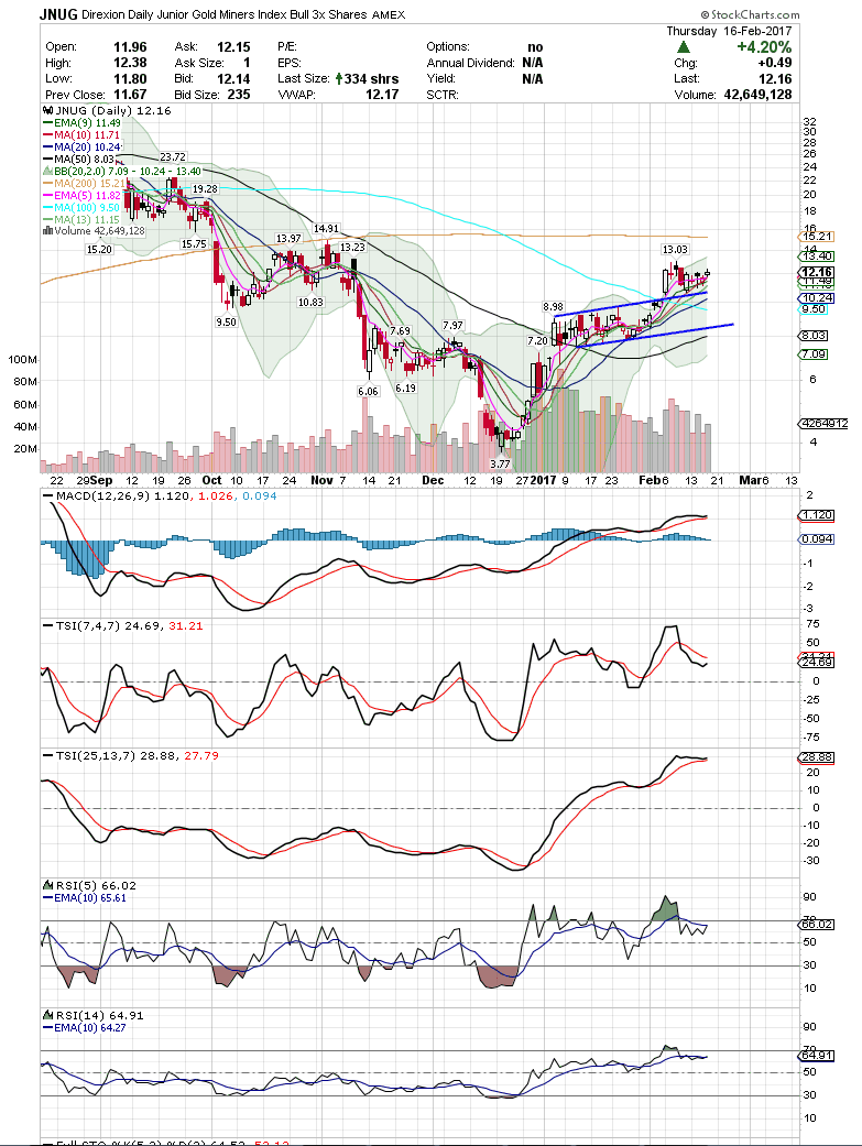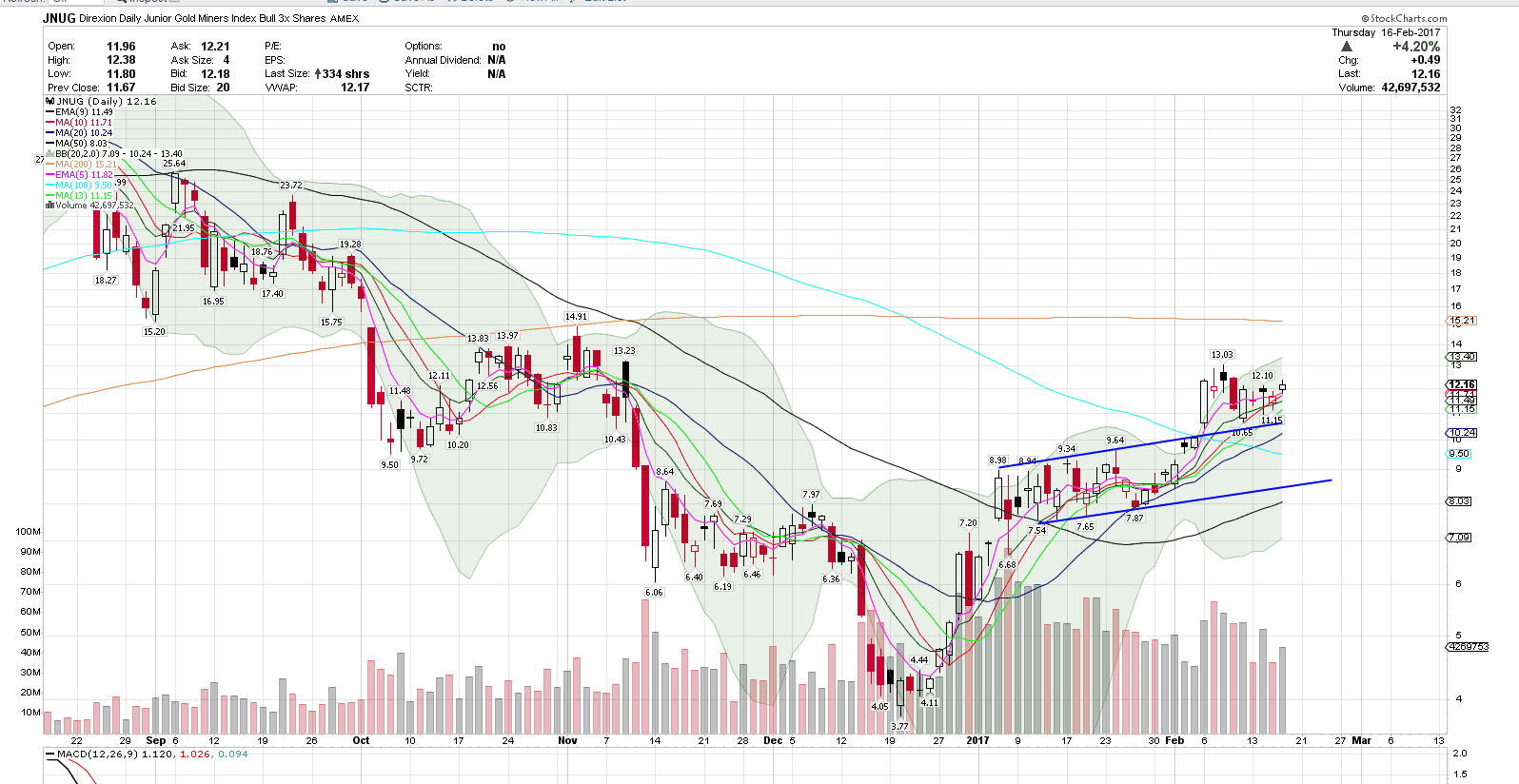 AAPL – Yes, AAPL is awesome and has again hit new highs. Yes, buying it years ago was SO rewarding. Yes, I knew Warren Buffet bought AAPL last year. Now look at this chart. Could you have held through the sell off in 2015? What about the sell off in all of October? So AAPL is up 50% in about a year. Very good, but some of these Miners are up 80-100% in 2 months, and others could be ready to play catch up.