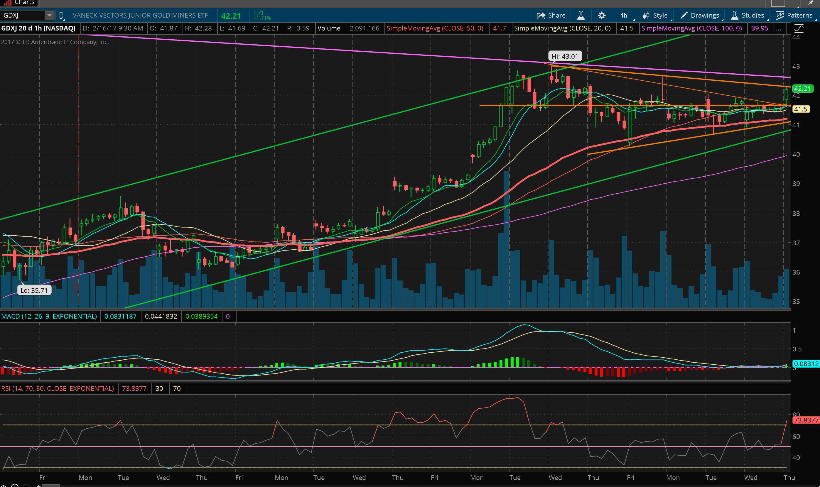 So again, we had 2 days of FED testimony before Congress, and Miners held up. Doesn’t that alone make them strong, not weak. 🙂 SO I am not thinking of selling at this point. I see what could be bull flags and I’d like to see them break out upside. Let’s allow Thursday and Friday to play out and see if that gives us any more information before the weekend starts. The FED spoke of inflation coming in, and that is good for Metals. I’m still holding all of my Mining positions. We’ll probably see soon enough whether we can or cannot get a higher high in this daily cycle. I think we can move higher, especially if that was the top for the USD.