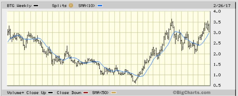 BTG was at 3 year highs last week! It was looking ready to break out to new highs and added to my confidence that Miners wanted higher price. If GOLD broke above 1264, I thought that this would rip higher too.  Monday it got slammed down with the rest of them.