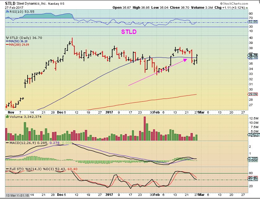 STLD –  Ditto and STLD lost the 50sma, but has now recovered it.