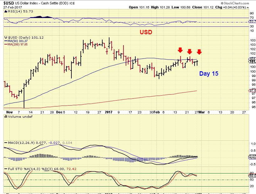 USD – The dollar has peaked on day 9, Monday was day 15.  A break to a new high would indicate that the USD wants to go a lot higher. Staying below day 9 should indicate that the USD is breaking down as expected.