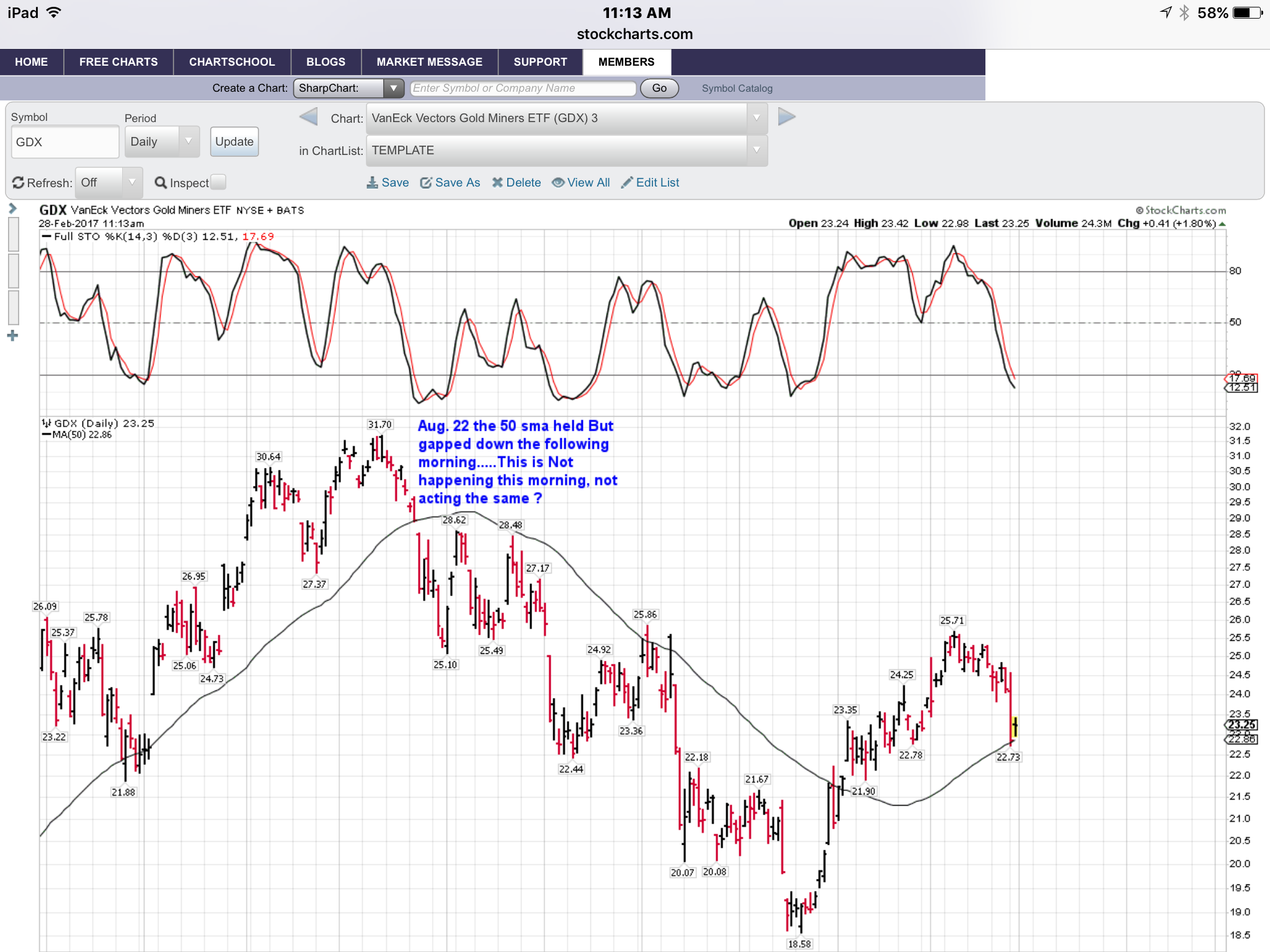 GDXJ is up 70 cents in premarket, so that is encouraging – right off of the 200sma.