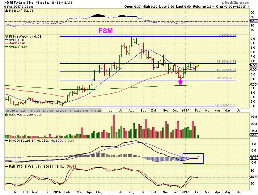 FSM WEEKLY – FSM did a perfect 61.8% pullback, and has moved almost 40% higher from Dec lows. I think that this one has plenty of upside.