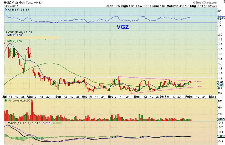 VGZ – Also from last Friday, this looks ready to break out to me. These long consolidations can be explosive, once they get going. UNTIL THEY GET GOING, they are BORING! This is actually an excellent base.