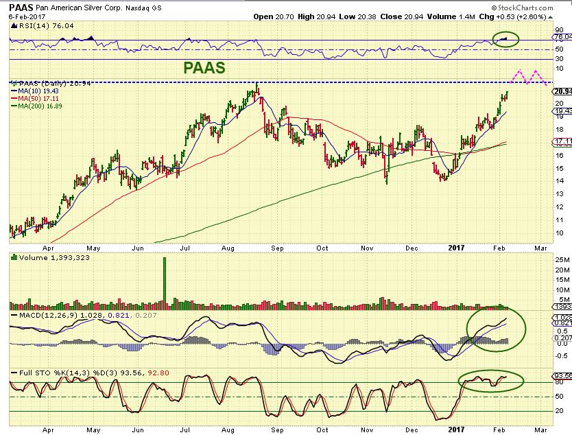 PAAS – PAAS is still running higher, but what if it is extended and is only tacking on 2 % each day now? It also may be nearing a peak? I might sell 1/2 my position…