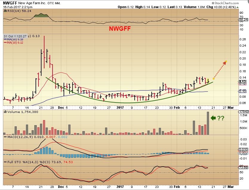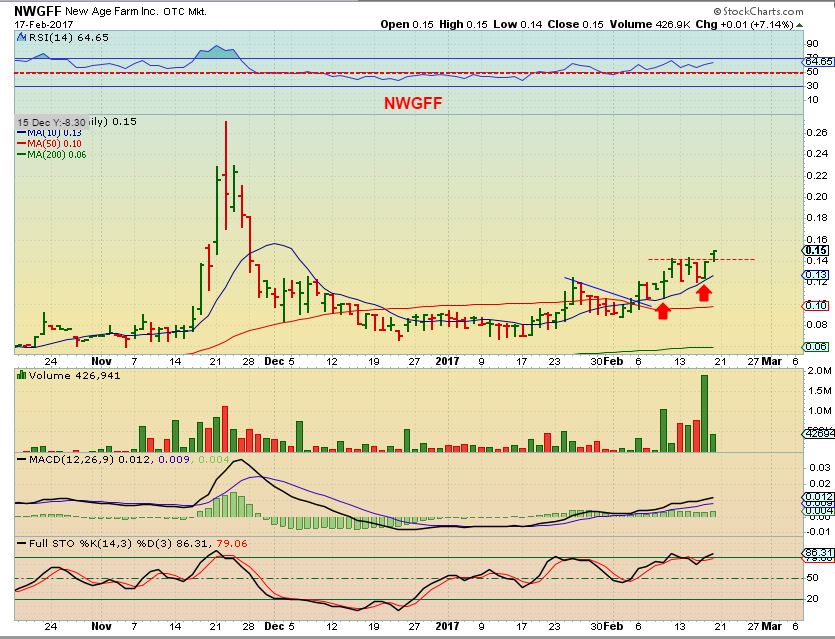 If you go back to the end of last Fridays report, I mentioned a few companies in the Medical Marijuana sector that were setting up bullishly, so let me start there.  If you need to read that report again to refresh your mind on the subject, including all of the warnings that should be made known and a link to my Dec report on this subject, please do so at this clickable Picture link.