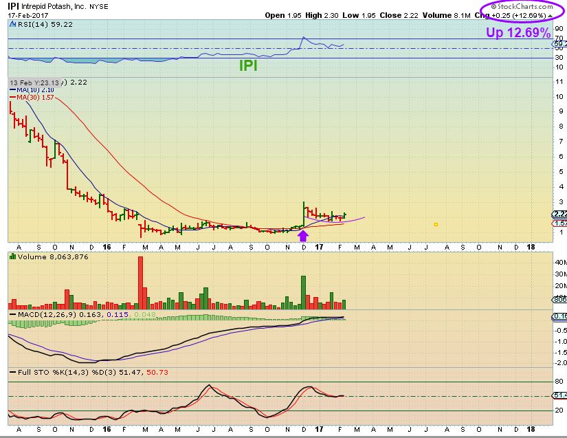 I just wanted to revisit this recent set up.  On Feb 13th, I posted this chart of IPI looking like it may finally be ready to break out from a recent consolidation.