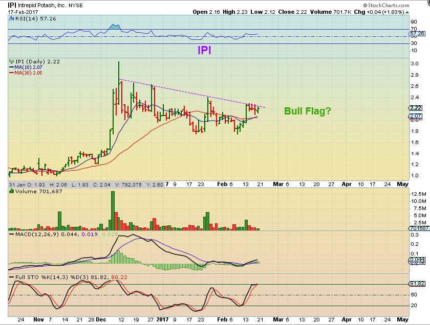 FEB 17th –  IPI now looks like it is forming a mini bull flag and building energy to break higher.