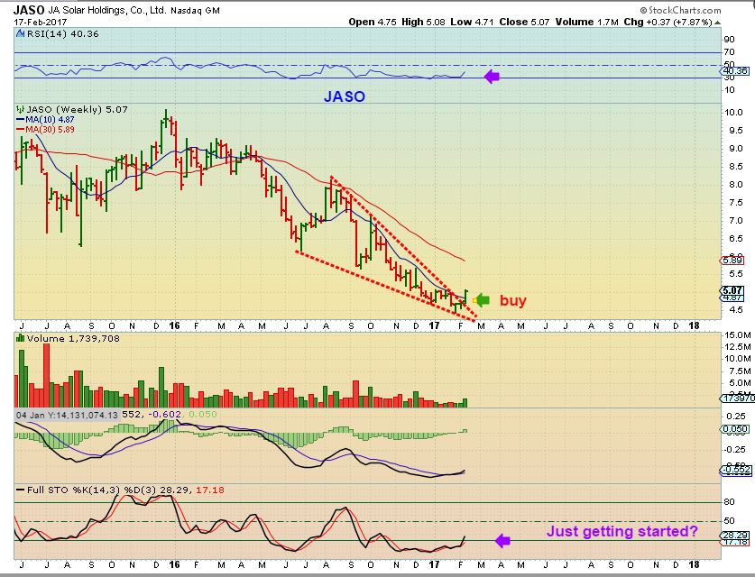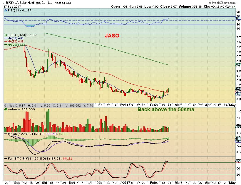 So it seems that the entire sector may be rebounding.  See also FSLR, JKS, TSL, RGSE,  SOL ( Breaking out soon?), YGE.  Some of these have done reverse splits in the past and some are looking weaker than others.  This means that it is best to do your own due diligence and as always, honor your mental or hard stops!