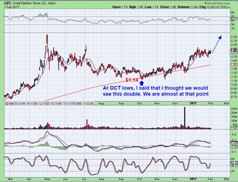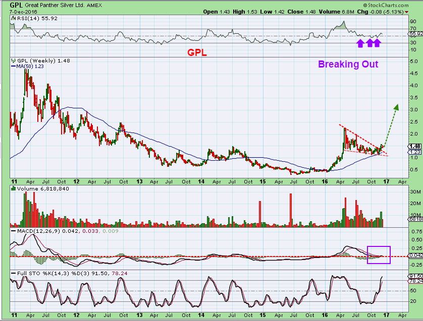 GPL – When I bought this at the October lows and it reversed there at the November lows, I was trying to convince readers that this could form a cup and actually double in a short period of time. It was $1.14 at the lows that day.