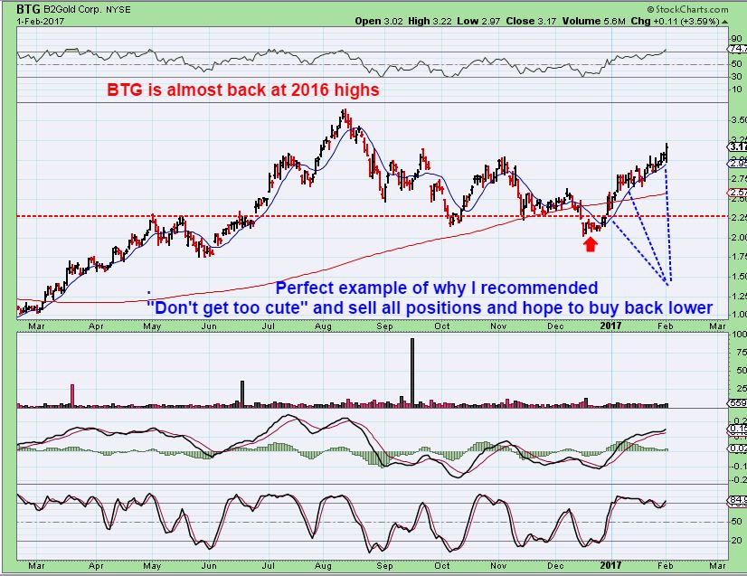 BTG – BTG is close to the 2016 highs. This is a good indicator that GDXJ should make it through the 200sma. BTG is also another Miners that shows why I didn’t want to be selling on the way up. There was no lower re-entry here.