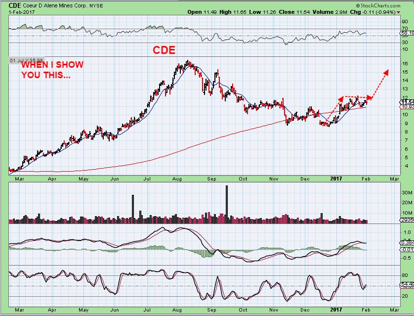 CDE – You want to remember this too, if the Bull market in precious metals remains. We could be continuing a potentially very profitable move in many of these miners.