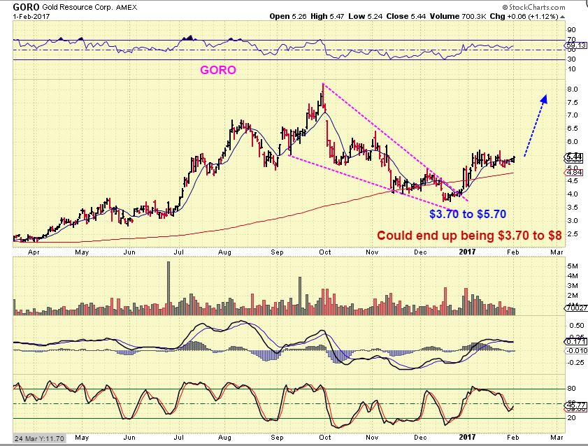So things went very well after the Fed Wednesday decision was released. The bullish look with many Miners not only remained, but we also saw more follow through in several of the leaders. Other miners that have been consolidating sideways still look set up to break out higher. If you followed my advice, you bought some Miners in December at or near the lows, and did not get too cute by selling your positions when we experienced a the wiggles. I recommended holding a good amount of MIners because we may not get a deep enough dip to re-enter if you sell them. We look to be starting the 2nd daily cycle and we should be able to continue to add to our gains as they move higher. Last week I actually said that I was fully loaded after seeing several Miners acting more bullishly than others ( See PAAS, RIC, BTG, ASM, etc). The charts in today, yesterday, and other recent reports should help build confidence in this sector. Yesterdays report alone had bullish charts of GSV, PAAS, ASM, CDE, AXU, TGD, BCEKF, CALVF, MXLGF, VITFF, TGD, etc., but of course we also faced a Fed Wed. That is now behind us, you may find some laggers with good set ups if you still have cash. I pointed out IAG & GORO in this report, we also have TGD, SA, SAND, EGO,MUX and others that look ready to move higher. Maybe the ones still near their lows like VGZ, AUMN, TRX, and so on will move with this move higher. You may want to reference past reports for some ideas. Enjoy your Thursday as we see what the Post fed Thursday has in store for us.