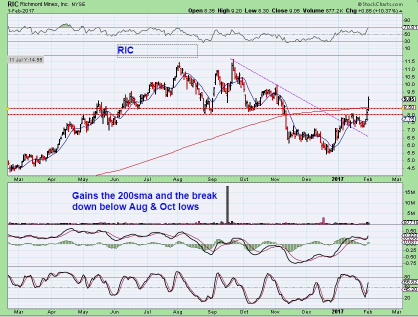 PAAS– Another nice little bull run. Good thing one didn’t sell PAAS after the first couple of weeks out of the lows. It also did not offer a lower entry.