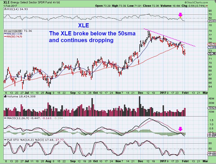 XLE – You may recall when Oil looked weak, and I pointed out that the XLE looked strong, so I expected higher price. Well, now we see the opposite. The XLE is breaking down below the 50sma, so I’m not comfortable trading Oil at this point.