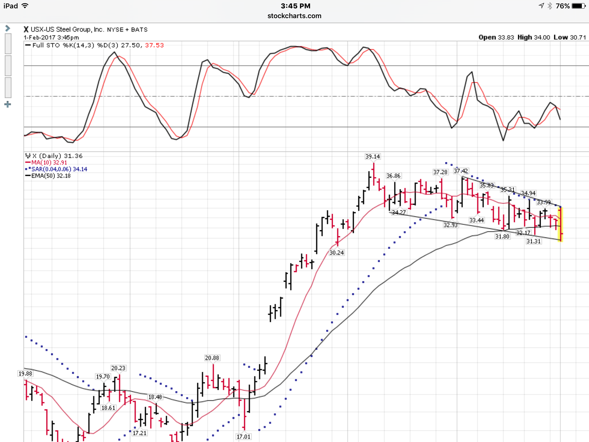 I’m just throwing together a few charts for a report in the morning and X is one of them. It looks excellent really- looks set to break out higher. If it does and has follow through, it could actually go to the $50’s.