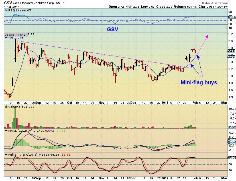 So things went very well after the Fed Wednesday decision was released. The bullish look with many Miners not only remained, but we also saw more follow through in several of the leaders. Other miners that have been consolidating sideways still look set up to break out higher. If you followed my advice, you bought some Miners in December at or near the lows, and did not get too cute by selling your positions when we experienced a the wiggles. I recommended holding a good amount of MIners because we may not get a deep enough dip to re-enter if you sell them. We look to be starting the 2nd daily cycle and we should be able to continue to add to our gains as they move higher. Last week I actually said that I was fully loaded after seeing several Miners acting more bullishly than others ( See PAAS, RIC, BTG, ASM, etc). The charts in today, yesterday, and other recent reports should help build confidence in this sector. Yesterdays report alone had bullish charts of GSV, PAAS, ASM, CDE, AXU, TGD, BCEKF, CALVF, MXLGF, VITFF, TGD, etc., but of course we also faced a Fed Wed. That is now behind us, you may find some laggers with good set ups if you still have cash. I pointed out IAG & GORO in this report, we also have TGD, SA, SAND, EGO,MUX and others that look ready to move higher. Maybe the ones still near their lows like VGZ, AUMN, TRX, and so on will move with this move higher. You may want to reference past reports for some ideas. Enjoy your Thursday as we see what the Post fed Thursday has in store for us.