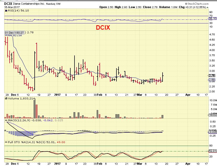 I’m just going to show one here today, but you can run through that list above and see if you like any of the others. I liked DCIX weekly chart and daily, so here it is.