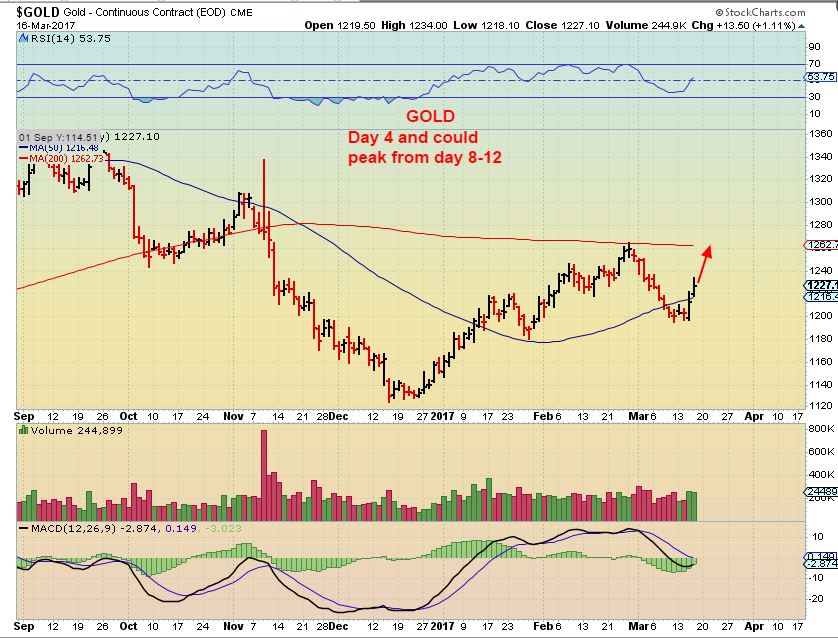 Just as a reminder : GOLD has put in a swing low to start the 3rd daily cycle, and I would expect it to reach the 200sma. If this is a 3rd daily cycle, it could form as Left Translated and top within 2 weeks of the lows. Trades should be considered short term going forward and we can then watch for more signs of strength or weakness around the 200sma.