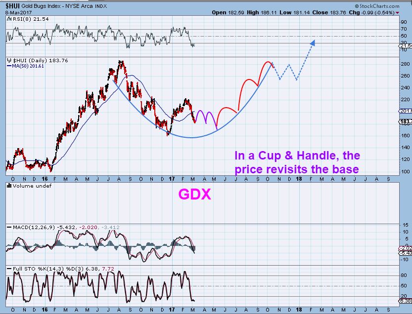 Reminder #2– So at this point, as shown on this chart that I posted back on March 8th, I have been expecting BOUNCES IN MINERS, but not a long term rally right now out of this low. Miners can be traded or purchased for the bounce at the lows as mentioned yesterday, but so far it may just be a short term trade for a week or two. We will have an EXCELLENT place to buy in the future at the next ICL, and that will be a great place to buy & hold Miners for a while. I will discuss this more in the weekend report.
