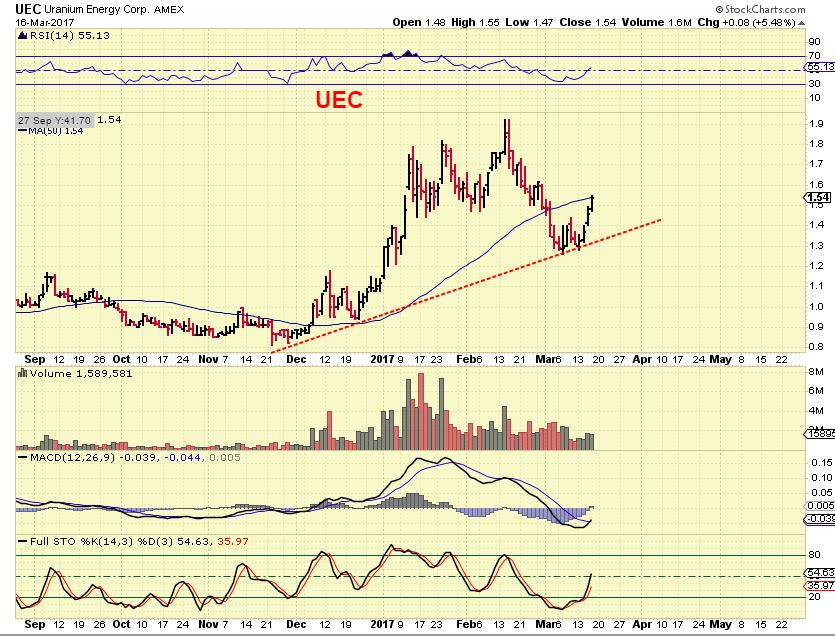 UEC– Such a similar set up, I’m expecting that UEC should break out above the 50sma
