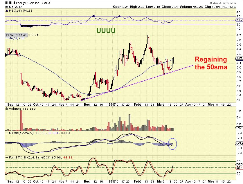 UUUU – I own this one and added yesterday just in case it follows through with its break above the 50sma
