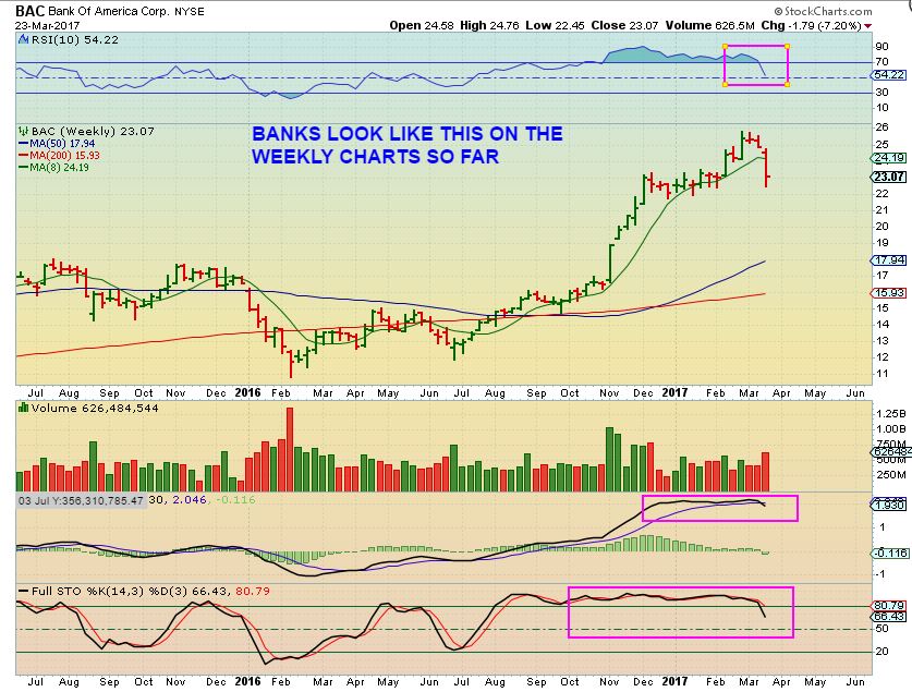 MOST BANK STOCKS AND THE XLF LOOK LIKE THIS SO FAR, so being long the General Markets right now could be risky.
