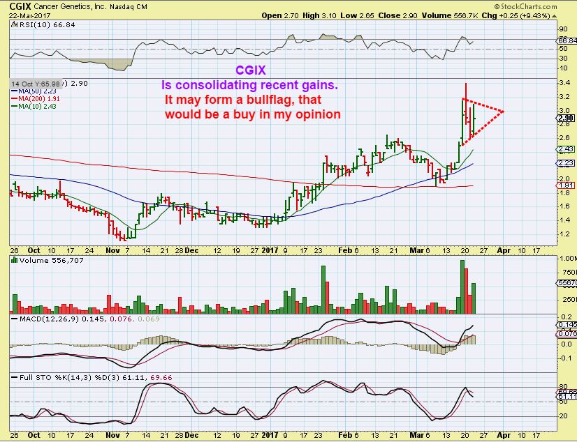 CGIX – This trade has also been working out very well. It is as bullish as I thought it would be, due to that excellent base set up, but it is playing out a bit differently, so let me share my updated observations.