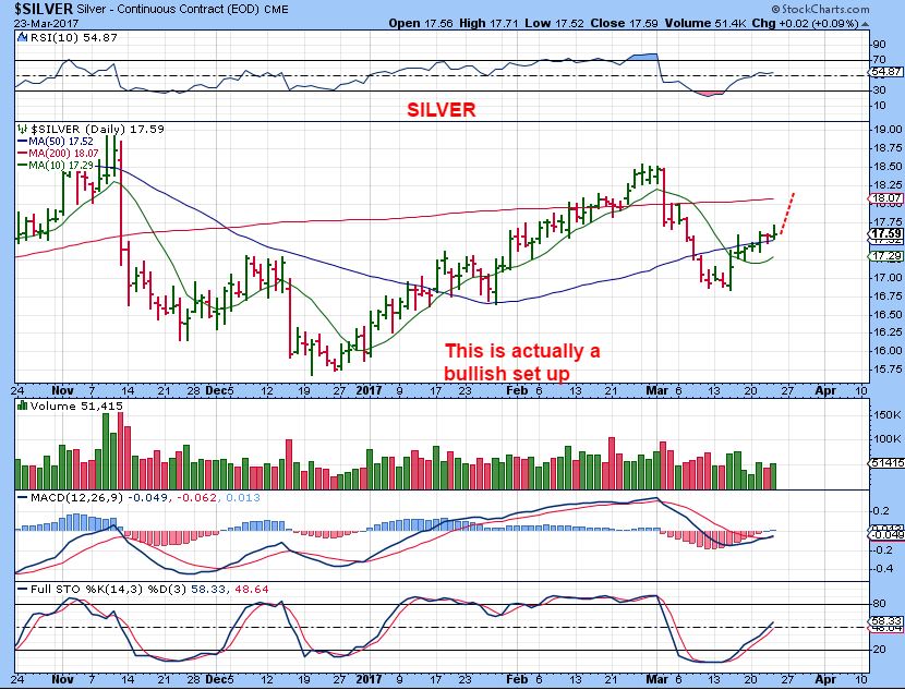 SILVER actually looks bullish too. It looks like it wants to tag the 200sma, and the way Silver POPS, it could do it in 1 day from here.